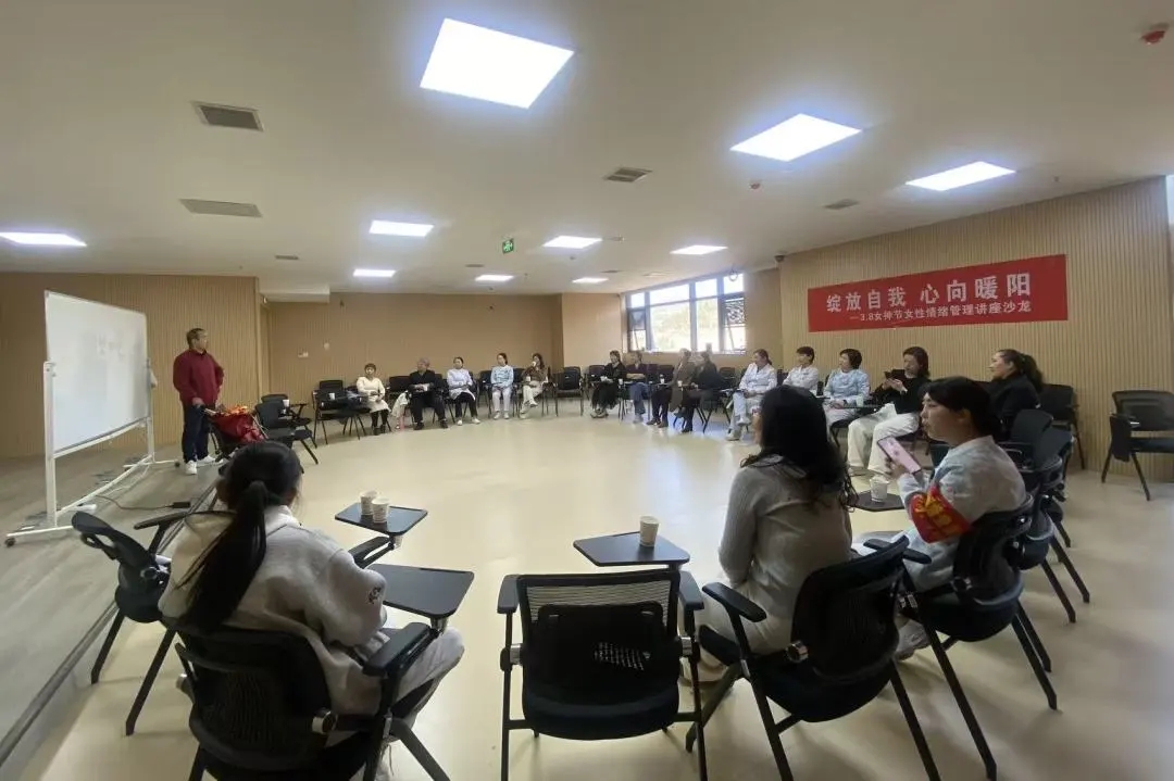 张学兵围绕现代女性常见的压力来源、情绪认知、心理调适、自我关怀等内容,结合临床案例与生活实际,用通俗易懂、生动实用的方式,讲解情绪管理的科学方法,引导大家正确认识情绪、有效疏导压力、积极调整心态。活动现场氛围温馨融洽,参与者认真聆听、积极互动,在轻松的交流中学习正念放松、压力缓解、情绪调节等实用技巧,进一步提升了自我关怀与心理调适能力。