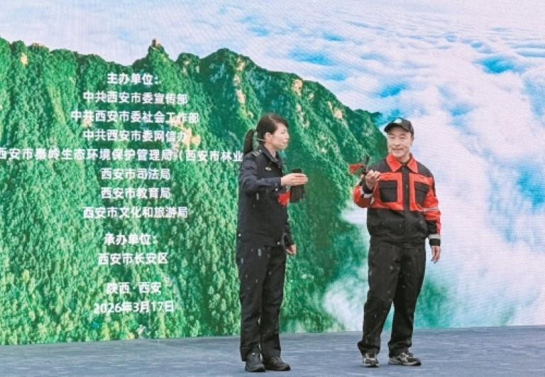 3月17日,西安细雨如酥,长安公园内却热潮涌动,伴随西安市第十三个秦岭生态环境保护宣传周正式启幕,一场关于“敬畏、守护、滋养”的生态交响曲在此奏响。从科研巨著的墨香到唐诗韵律的流淌,从网格员的深情咏唱到市民的争相抢答,这一天,秦岭不再只是推窗可见的远山,而是化作一场全民参与的深情奔赴。