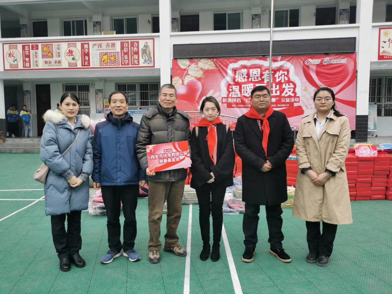 杨隙陌(右三)在海尔希望小学开展捐赠活动