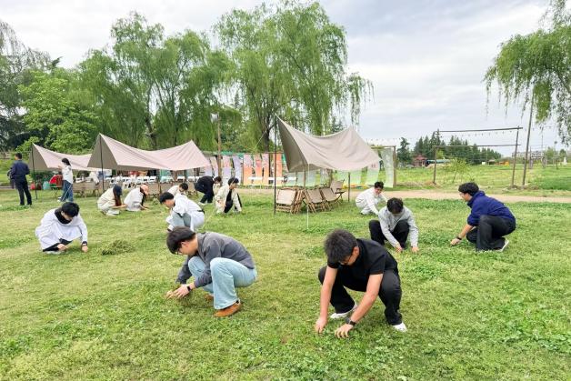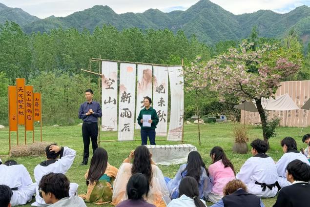 记者到访当天,恰逢西京学院学生来此研学。阳光草坪上,一场“田园里的唐诗”阅读分享会率先展开,同学们围坐诵读经典;随后的飞花令环节,以园、田、山、水字为主的诗句你来我往,笑声与诗声随风飘荡;最后大家挽起袖子走进田间拔草实践,在汗水中体会“汗滴禾下土”的真意。三个环节,从诗心到劳作,正是农庄“诗教+农教”融合的生动缩影。